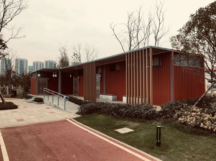MORE拼裝廁所;在廠里做好各個廁所部件,再到現(xiàn)場組裝在一齊,適合不易運輸?shù)拇笮蛶_@座箱式廁所,女廁5個蹲位內(nèi)配工具間,男廁2個蹲位+2小便斗,第三衛(wèi)生間由殘疾馬桶、助力洗手盆和兒童馬桶、兒童洗手盆外加嬰兒臺等設(shè)施。廁所前后有窗,通風采光,前部走廊裝有屋檐,防雨防曬。此廁所位于公路綠道邊,整體大氣,功能齊全,造型美觀,是一道難得的靚麗景觀!